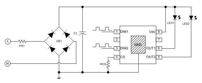 L107 是一款支持智能調光調色溫應用的線性恒流驅動芯片,單顆芯片驅動功率高達12W,滿足功率因數(shù)為0.5 或0.7 的應用,在1%至100%范圍內調光(或調色溫)。