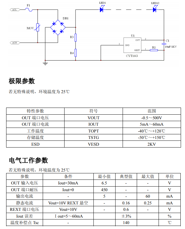 CYT16G is a linear constant current IC with adjustable output current, high constant current precision, simple application scheme, cost equivalent to resistance-capacitance step-down, and over-temperature protection function, which is safer and more reliable.