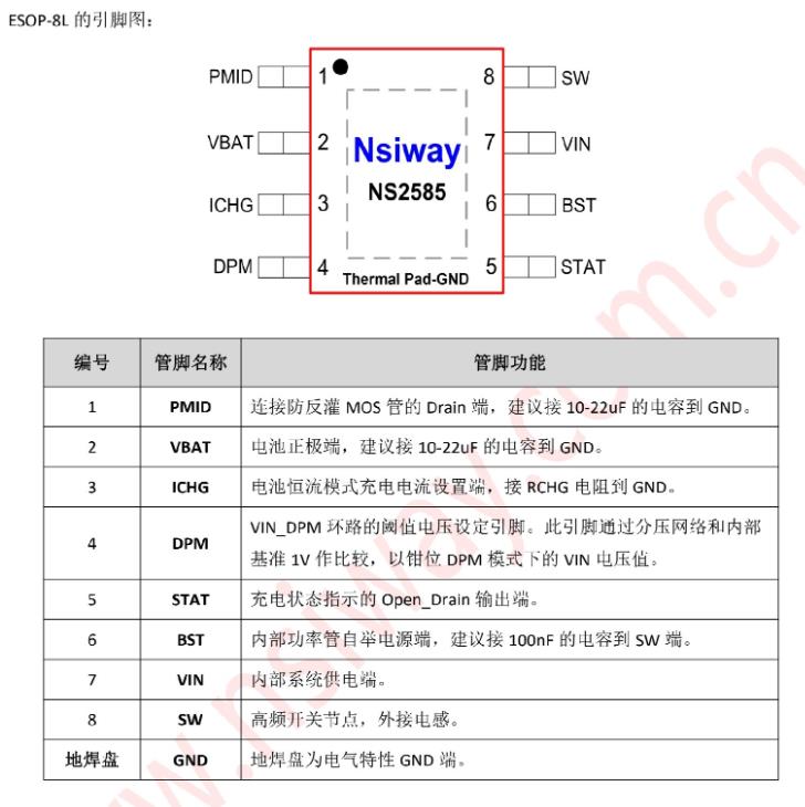 NS2585 最大2A同步升壓型2節鋰電池充電管理 IC
