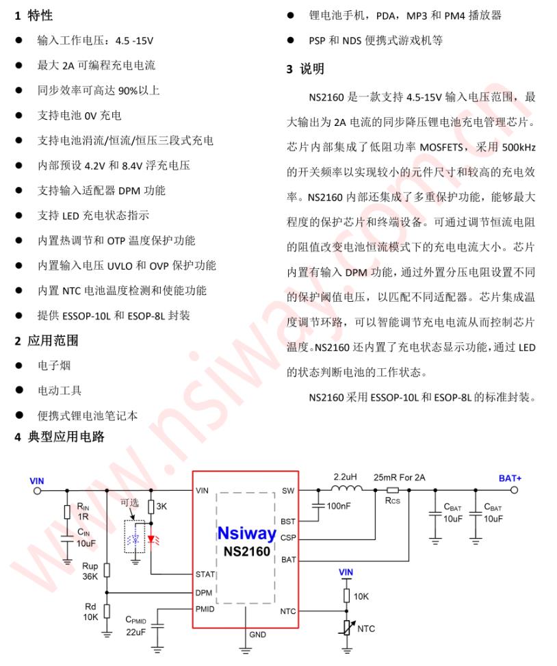 NS2160 2A同步開關型降壓鋰電池充電管理 IC