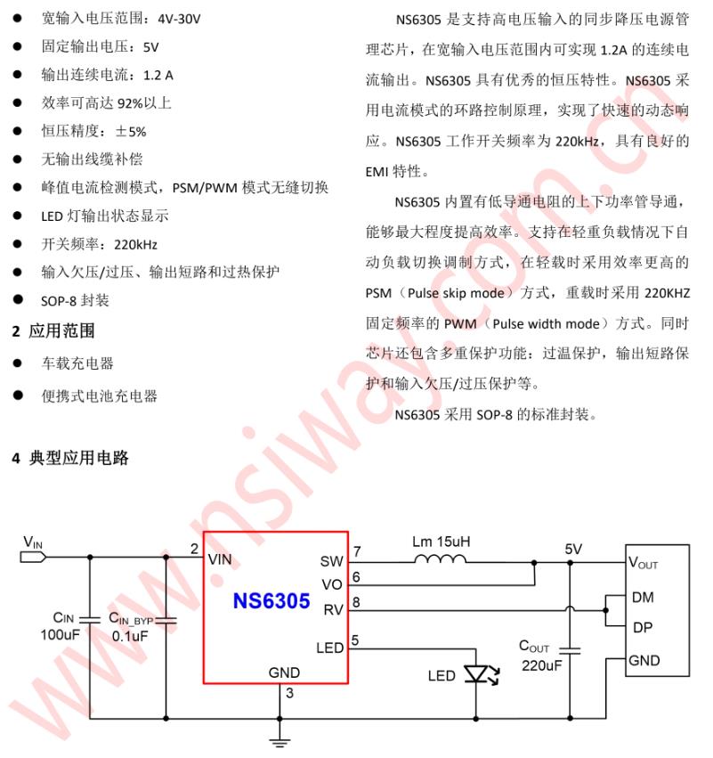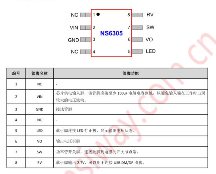 NS6305 固定5V/1.2A輸出同步降壓型穩壓器