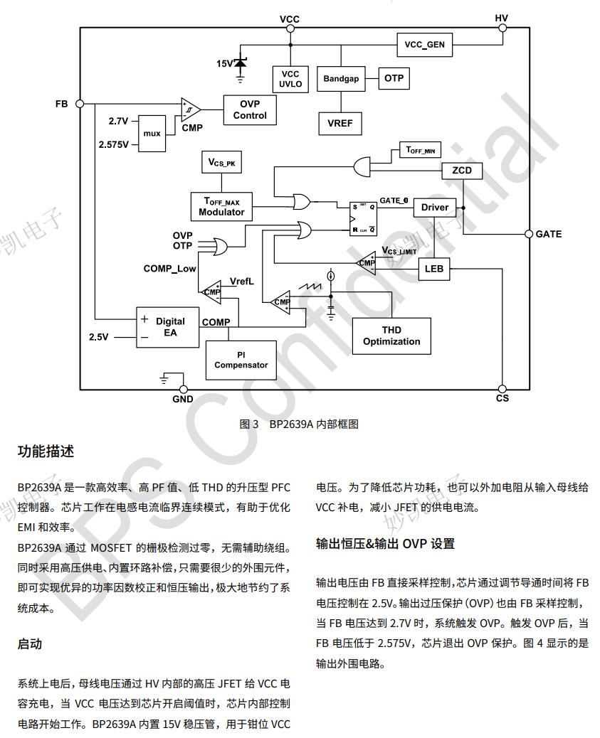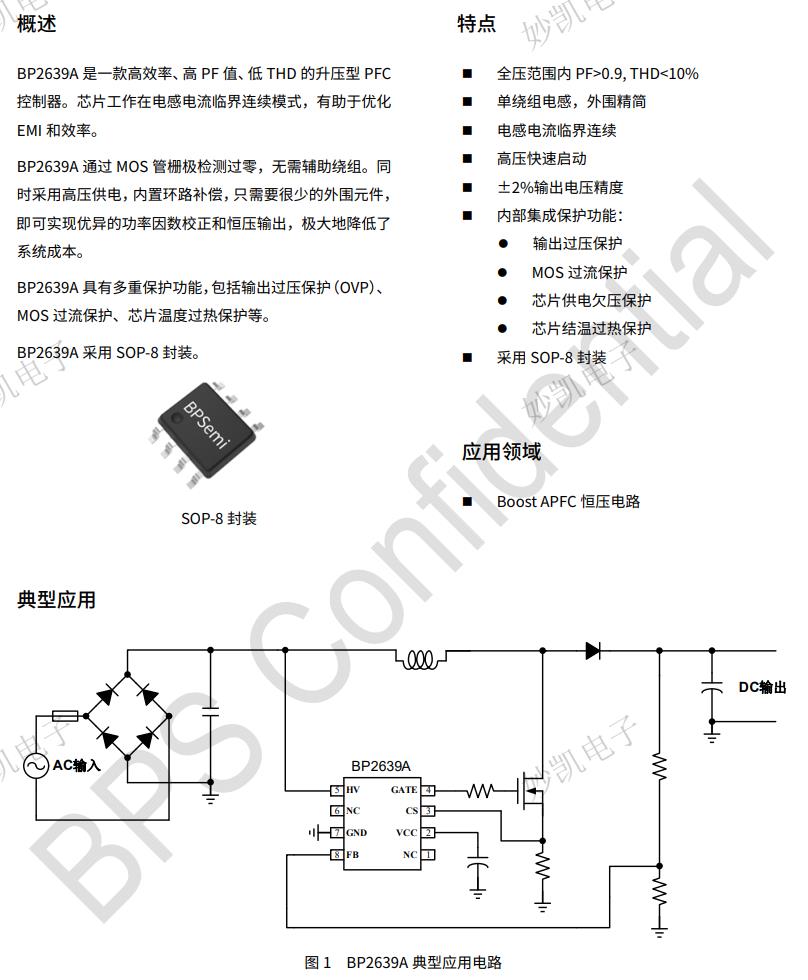 BP2639A是一款高效率、高PF值、低THD的升壓型PFC控制器。芯片工作在電感電流臨界連續(xù)模式,有助于優(yōu)化EMI和效率。
