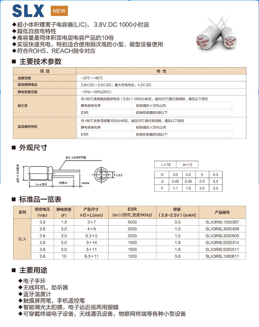 超小體積鋰離子電容器(LIC),3.8V 1000小時品
