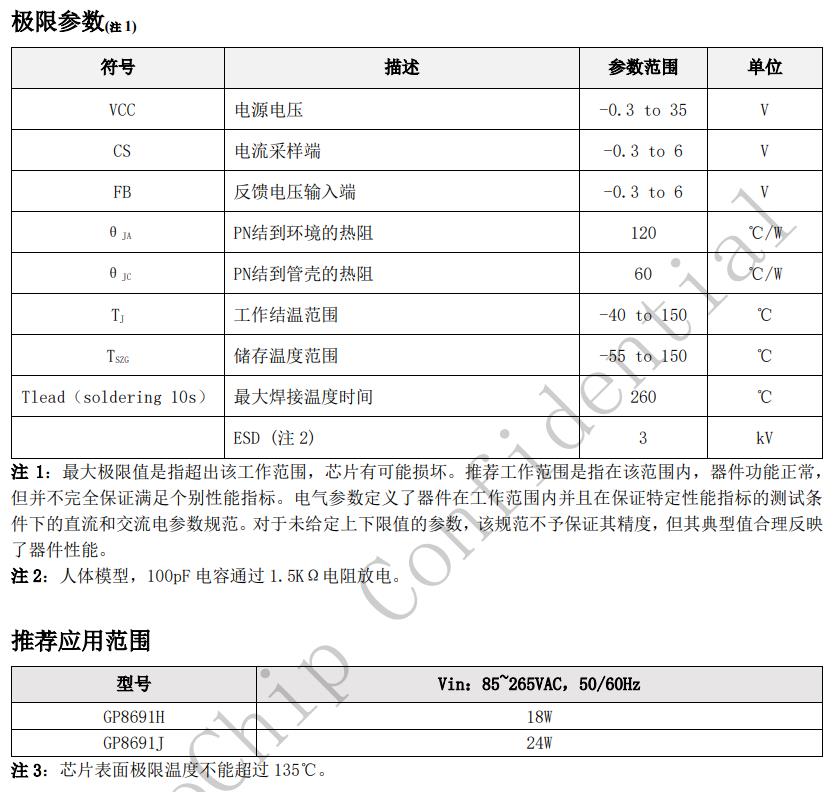 初次級(jí)高壓測(cè)試芯片高可靠性原邊反饋控制恒壓、恒流精度高≦75mW待機(jī)功耗可調(diào)的輸出線損補(bǔ)償技術(shù)FB開路保護(hù),過(guò)壓保護(hù),欠壓保護(hù),過(guò)溫保護(hù),F(xiàn)B到地短路保護(hù),次級(jí)繞組短路保護(hù),次級(jí)肖特基短路反接保護(hù),輸出過(guò)欠壓保護(hù)。