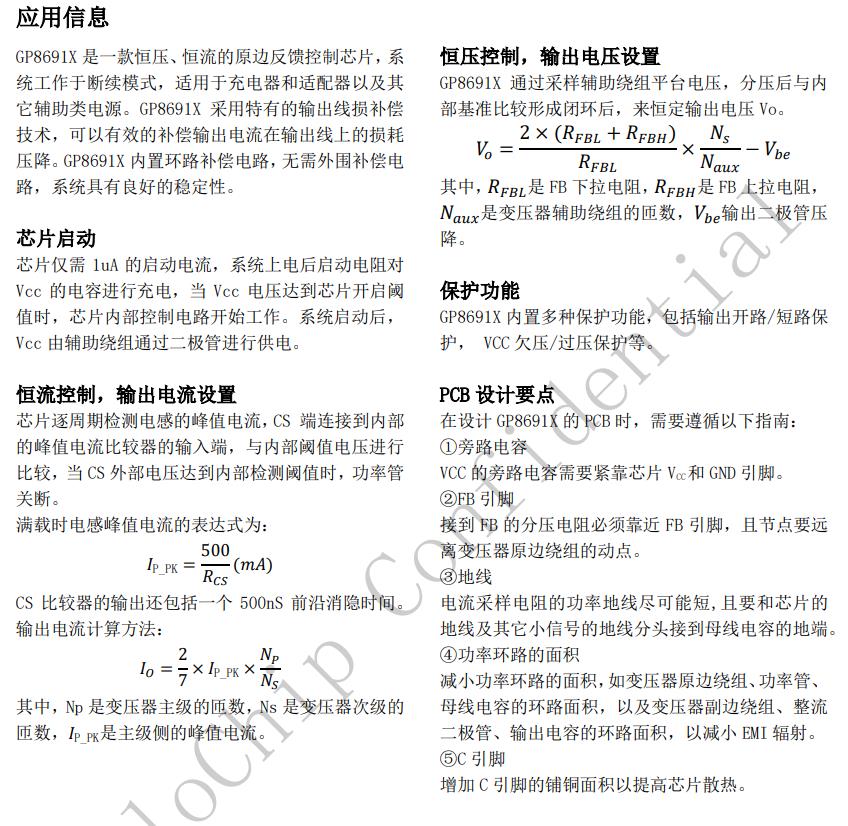 GP8691X內(nèi)置環(huán)路補(bǔ)償電路,無(wú)需外圍補(bǔ)償電路,系統(tǒng)具有良好的穩(wěn)定性。