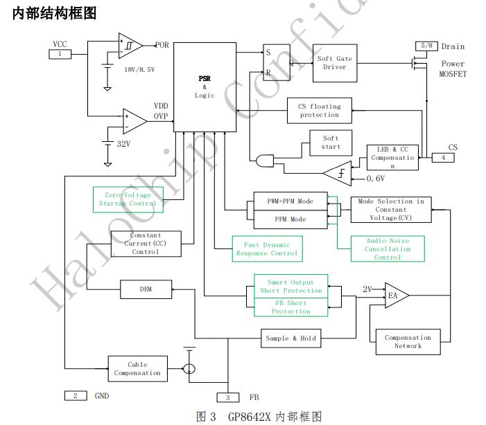GP8642X提供軟啟動,音頻噪音消除技術(shù)以及多種保護(hù)功能,諸如自動重啟,逐周期電流限制,VCC過壓欠壓保護(hù),管腳開路短路保護(hù),驅(qū)動鉗位保護(hù)等。