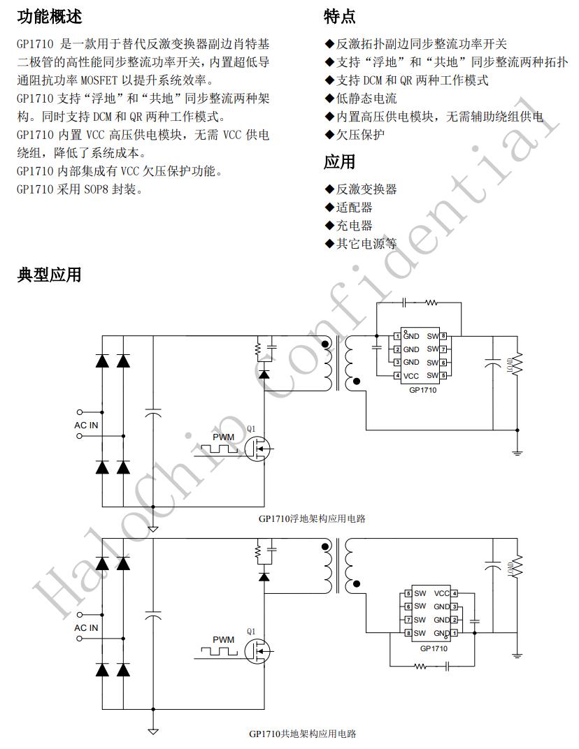 GP1710支持“浮地”和“共地”同步整流兩種架構(gòu)。同時(shí)支持DCM和QR兩種工作模式。