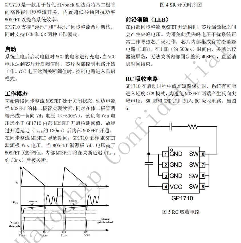 GP1710是一款用于替代反激變換器副邊肖特基二極管的高性能同步整流功率開關(guān),內(nèi)置超低導(dǎo)通阻抗功率MOSFET以提升系統(tǒng)效率。